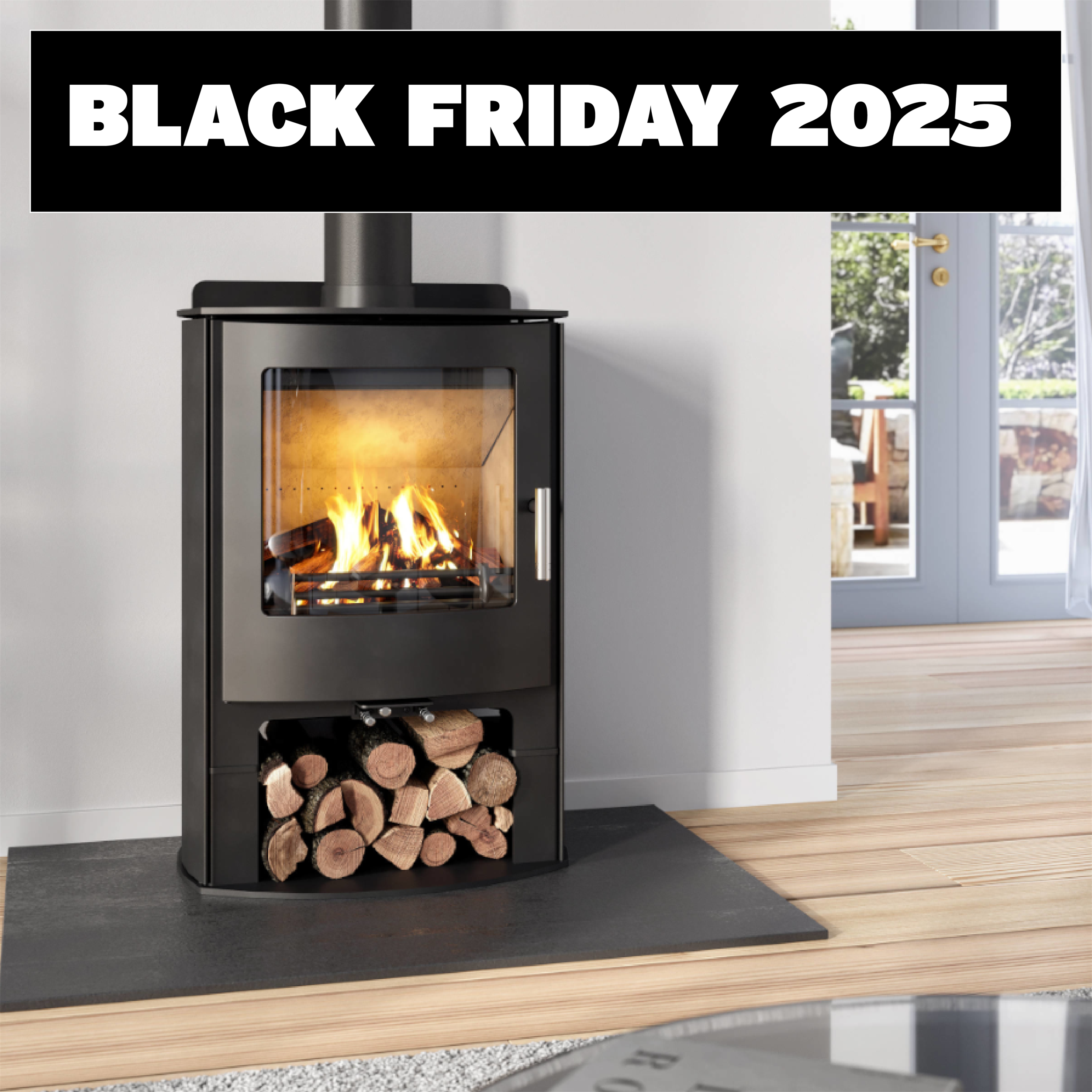The Churchill 5 Convection Logstore Dual Control also features contemporary curved convection panels which lower the distance to combustibles to the sides of the stove to 150mm, and the handy addition of a logstore below the stove, which lifts the fire up into your room for an even better viewing experience.