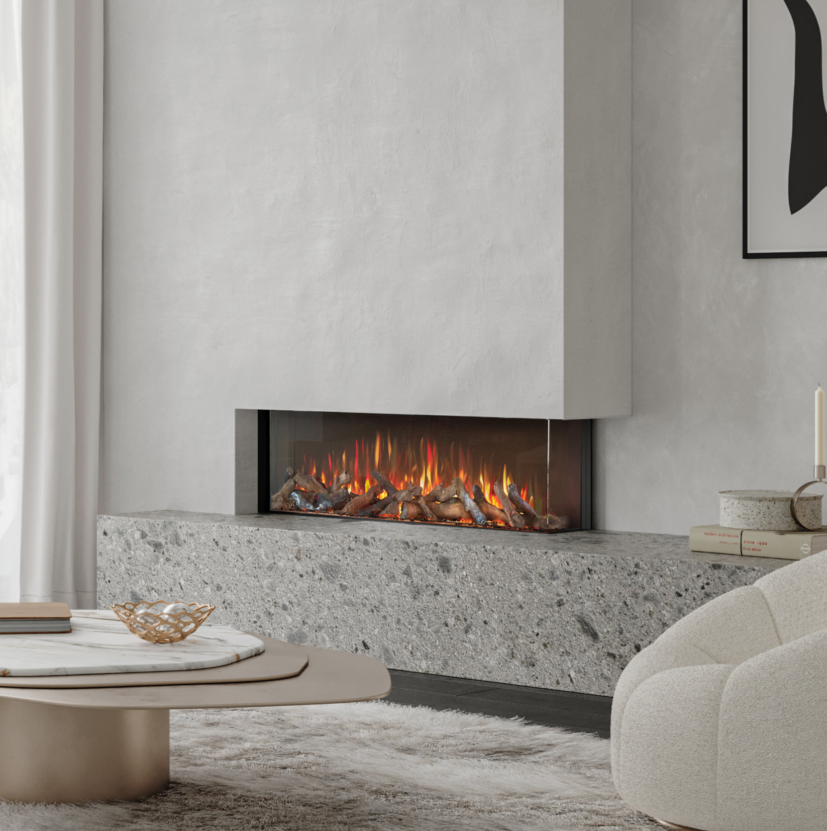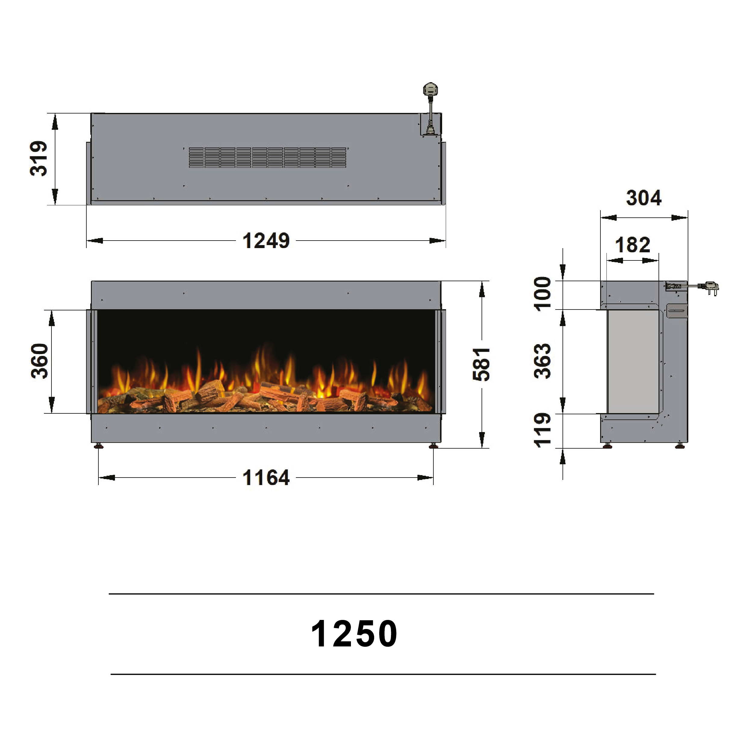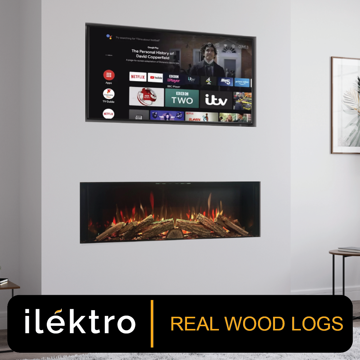 The Ilektro 1250 Landscape Electric Fire is a stylish, modern addition for any home. Choose from three log sets: real wood (extra cost), log effect, or driftwood style, and enjoy an immersive visual experience with the atmosphere chamber and non-reflective dark back.