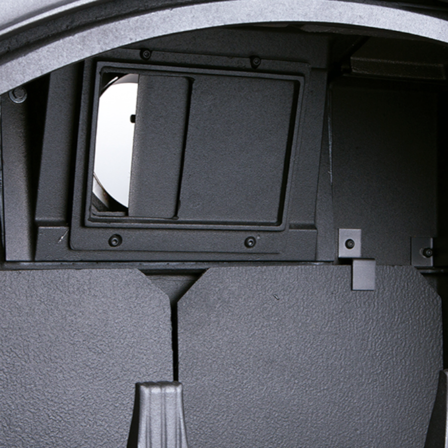 - Side loading door – accommodates longer logs and reduces ash deposits