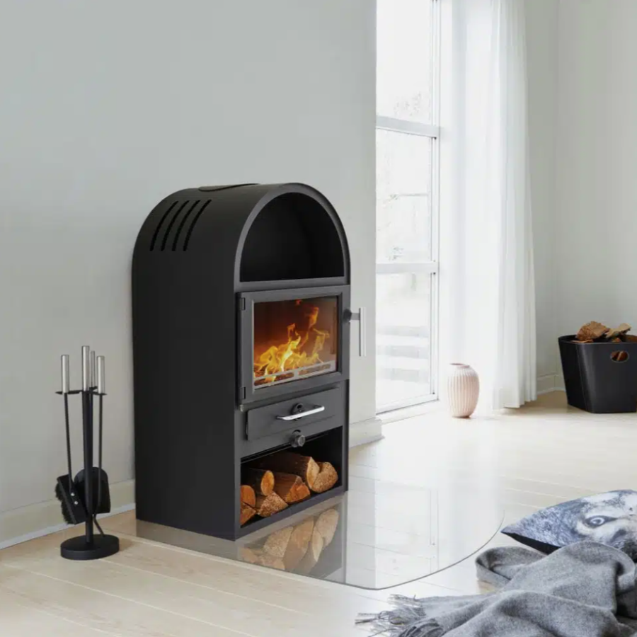 The Varde Thurø 13 brings the campfire experience indoors with its rustic, compact design and an extra-wide glass pane that showcases rolling flames in all their glory. Built with solid cast iron—including the chamber base, shaker grate, and door—the stove is both durable and striking. It features a pane‑cleaning airwash system that helps keep the glass clear when used correctly, maximising flame visibility. With a generous combustion chamber accommodating logs up to 35 cm long, it combines practicality with performance.